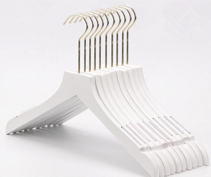 Perchas de madera pintura blanca mate con gancho dorado 15cm. Adecuado para camisas, camisetas, sudaderas, vestidos con tirantes y/o jerseys.